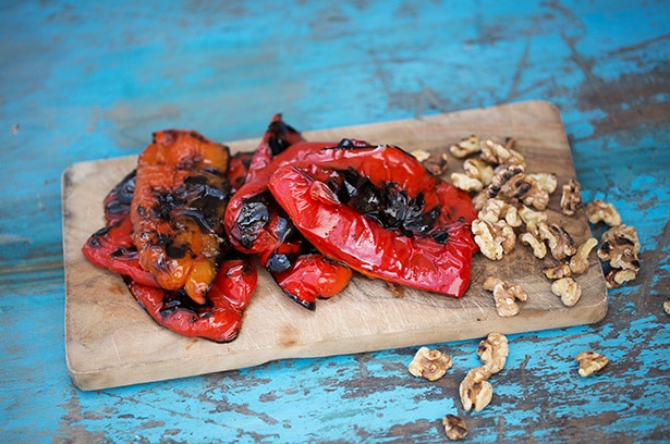 Diesen wunderbaren Paprika-Dipp aus der syrischen Küche habe ich zum ersten Mal bei meiner Freundin Ling gegessen, die uns auf unseren Wellcuisine-Retreats unterstützt und die zusammen mit Thomas für das Frühstück und Mittagessen zuständig ist. Unsere Art zu kochen ähnelt sich sehr und wir inspirieren einander nun schon seit fast 10 Jahren – und nebenbei lachen wir auch viel, ziehen Tarotkarten und kauderwelschen auf Deutsch und Englisch durcheinander, denn Ling kommt aus Neuseeland. Als Ling diesen Dipp für den ersten („Mezze“-) Abend unseres Mallorca-Retreats zubereitete, ging beim ersten Bissen ein Raunen durch die Runde – so gut ist er! – und in diesem Moment beschlossen wir, ihn ein paar Tage später im Kochkurs noch einmal zuzubereiten, so dass alle das herrliche Rezept mit nach hause nehmen konnten. Das schöne an so einem Dipp ist, dass er keine „One-Man-Show“ ist, sondern sich mit vielen Mahlzeiten gut verträgt und sie veredelt. Ein schlichtes Gemüse aus dem Ofen mit diesem Dipp? Köstlich. Rohe Gemüsesticks damit? Ja!! Auch mit Fladenbrot, knusprigen Kartoffelwedges aus dem Ofen oder mit einem Stück Fleisch vom Grill verträgt sich dieser Dipp fantastisch. Ist das nicht der wahre Sinn von Freundschaft? Dass man das Gute im anderen sieht und verstärkt? Dass man zusammen über sich selbst hinauswächst? In diesem Sinne ist dieser Dipp ein guter Freund, der alle um ihn herum zum Strahlen bringt. Apropos: dieser Dipp zeigt sich auch gern in Gesellschaft von Baba Ganoush, der rauchigen Creme aus gerösteten Auberginen – zusammen machen sie aus einer losen Ansammlung von Salat, geröstetem Gemüse und Fladenbrot eine Tafel wie aus 1001 Nacht. Auf die Freundschaft!