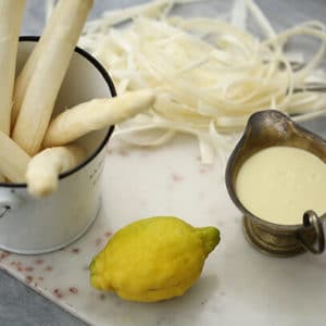 Die Sauce warm mit frisch gekochtem Spargel servieren.