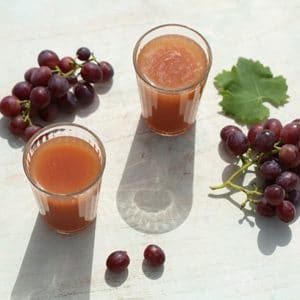 Trauben waschen und mit Zitronensaft, Wasser und Ingwer im Standmixer pürieren.